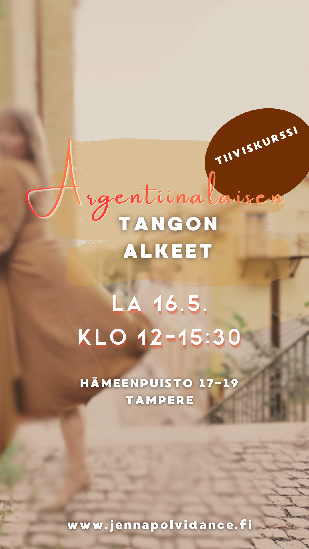 Argentiinalaisen tangon tiiviskurssilta saat hyväät eväät argentiinalaisen tangon alkeisiin oletpa sitten vasta-alkaja, joskus aiemmin argentiinalaista tangoa kokeillut tai haluat harjoitella toista roolia. Etenemme perusteellisesti ja rauhassa, harjoittelemme perustekniikkaa sekä käyttökelpoista liikemateriaalia. Tavoitteeni alkeistunneilla on aina, että jokainen kokee tanssivansa argentiinalaista tangoa.